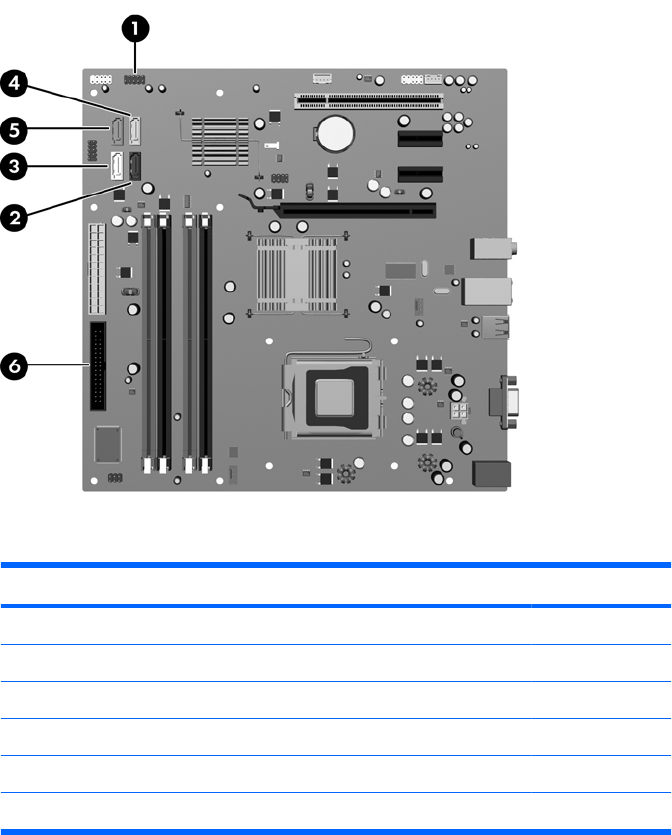 Refer to the following illustration and table to identify the system board drive connectors.