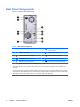 Rear Panel Components Figure 1-4 Rear Panel Components Table 1-3 Rear Panel Components 1 Power Cord Connector 6 Line-Out Connector for powered audio devices (green) 2 Voltage Select Switch 7 Microphone Connector 3 Line-In Audio Connector (blue) 8 Universal Serial Bus (USB) 4 RJ-45 Network Connector 9 VGA Monitor Connector (blue) 5 PS/2 Mouse Connector (green) 10 PS/2 Keyboard Connector (purple) NOTE: Arrangement and number of connectors may vary by model.