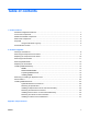 Table of contents 1 Product Features Standard Configuration Features ......................................................................................................... 1 Front Panel Components ..................................................................................................................... 2 Media Card Reader Components ......................................................................................................... 3 Rear Panel Components ................................