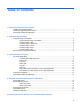 Table of contents 1 Installing and Customizing the Software Installing the Operating System ........................................................................................................... 1 Installing or Upgrading Device Drivers ................................................................................................. 1 HP Backup and Recovery Manager .....................................................................................................