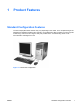 1 Product Features Standard Configuration Features The HP Compaq Microtower features may vary depending on the model. For a complete listing of the hardware and software installed in the computer, run the diagnostic utility (included on some computer models only). Instructions for using the utility are provided in the Troubleshooting Guide on the Documentation and Diagnostics CD.
