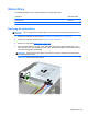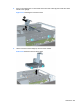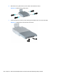 4. Press in the release latch on the left side of the hard drive carrier (1) then rotate the carrier