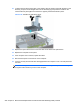 4. Press in the release latch on the left side of the hard drive carrier (1) then rotate the carrier