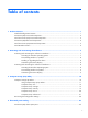 Table of contents 1 Product Features ............................................................................................................... 1 Standard Configuration Features ................................................................................................ 1 Microtower (MT) Front Panel Components ................................................................................... 2 Small Form Factor (SFF) Front Panel Components .........................................................
