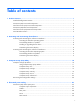 Table of contents 1 Product Features ............................................................................................................... 1 Standard Configuration Features ................................................................................................ 1 Microtower (MT) Front Panel Components ................................................................................... 2 Small Form Factor (SFF) Front Panel Components ..........................................................