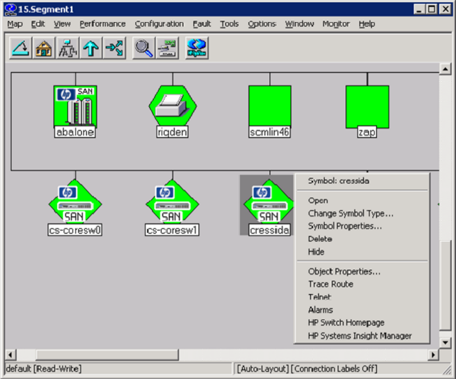 Right-click the device on the NNM Segment Map, and select the device homepage (in this example, HP