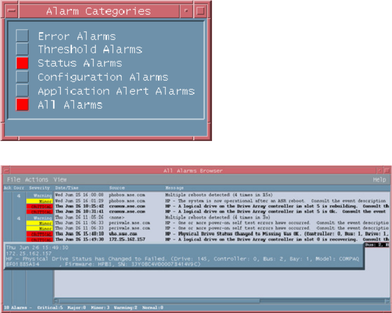 the Alarm Categories window, click Status Alarms or All Alarms.