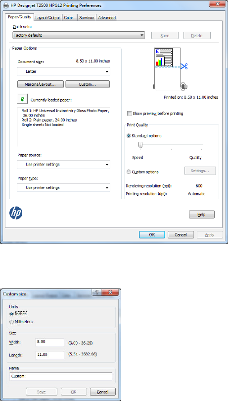 neues Papierformat definieren möchten, klicken Sie auf die Schaltfläche Benutzerdefiniert.
