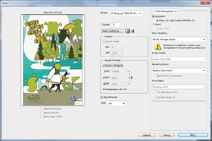 1. Wählen Sie in Photoshop CS5 die Option Datei > Drucken. Wählen Sie dann den Drucker aus, und klicken
