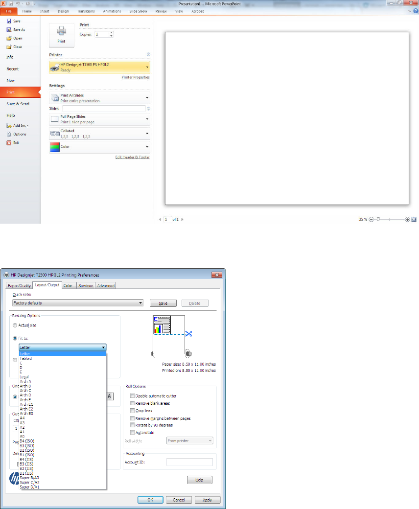 1. Wählen Sie die Registerkarte Datei, dann Drucken und zuletzt den Namen des Druckers aus.