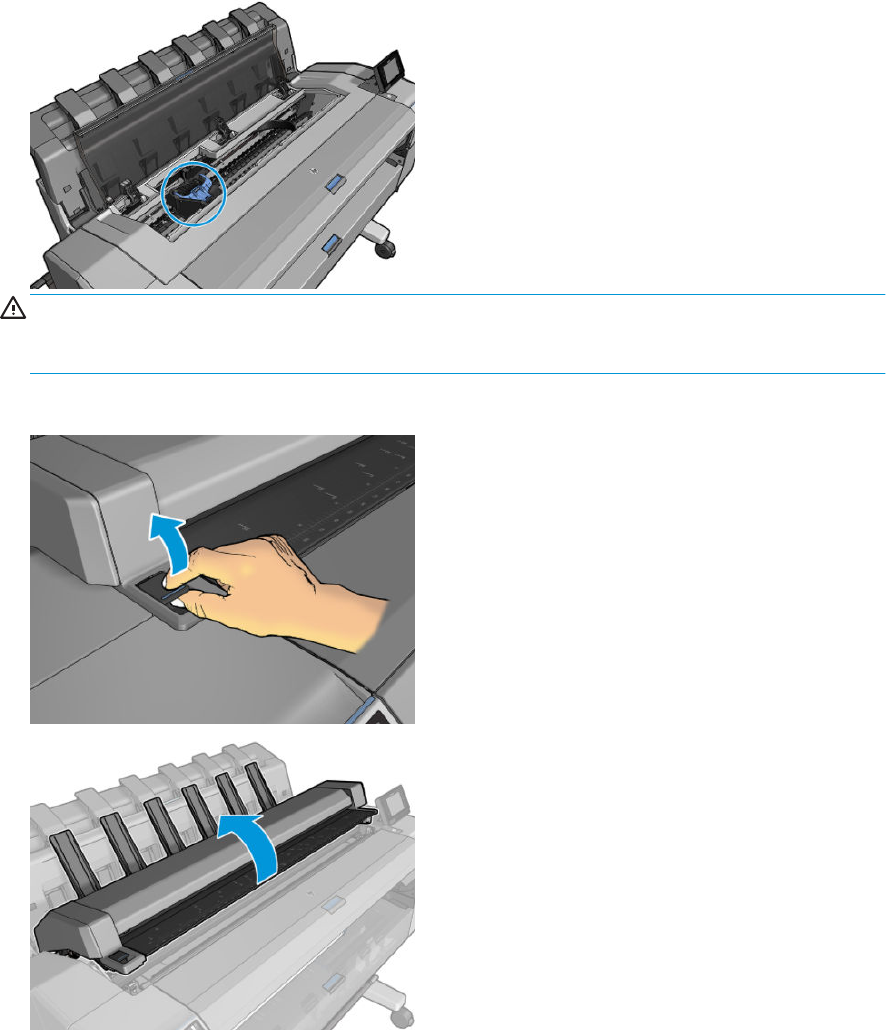 ACHTUNG: Wenn der Druckschlitten mehr als drei Minuten in der Entnahmeposition bleibt, ohne dass