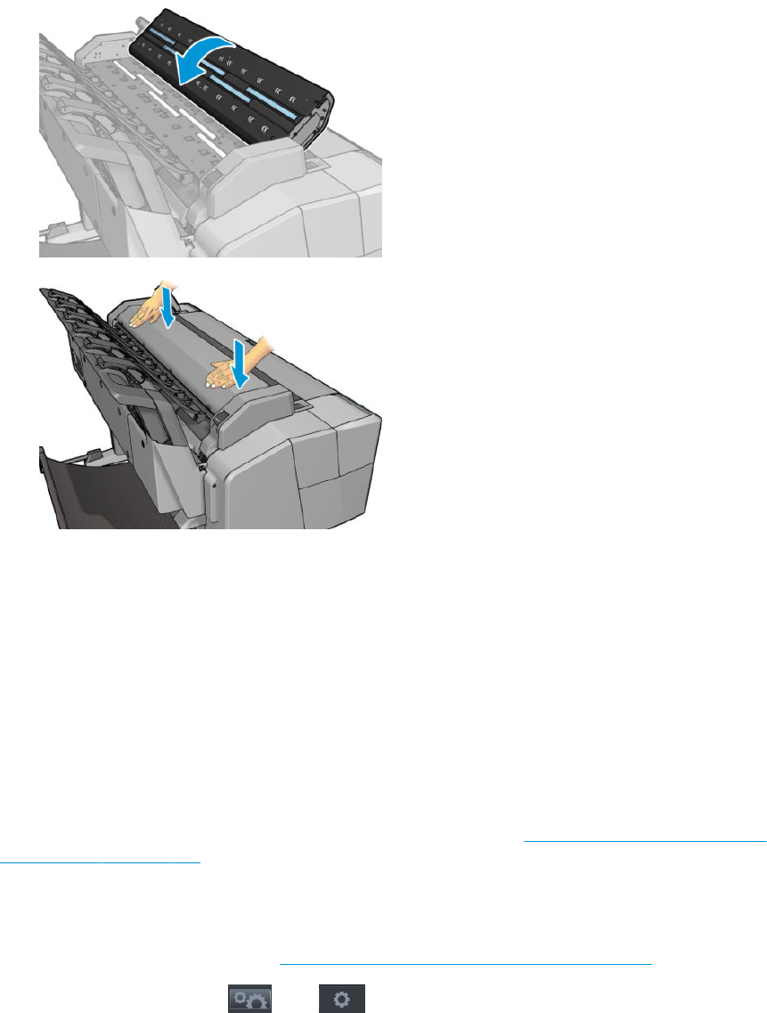 9. Schließen Sie die Scannerabdeckung, und drücken Sie sie leicht nach unten, bis sie einrastet.
