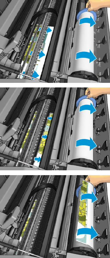 6. Wickeln Sie das Papier von Hand wieder auf die Rolle.
