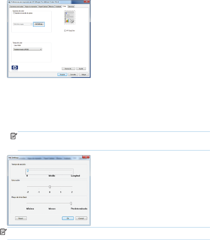 NOTA: El cambio manual de la configuración de color puede afectar al resultado de la
