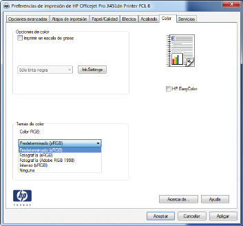 Predeterminado (sRGB): este tema configura el producto para imprimir los datos RGB en