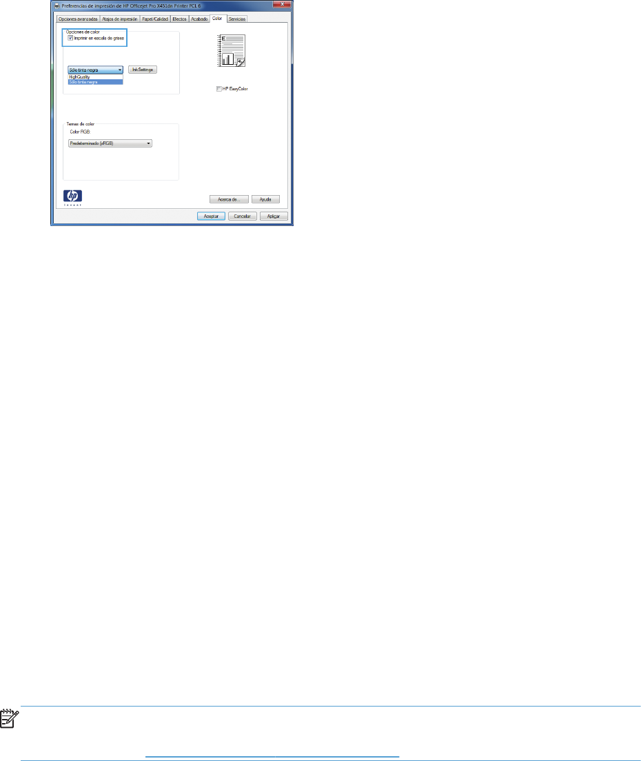 También puede utilizar esta opción para imprimir borradores o ahorrar cartucho de color.