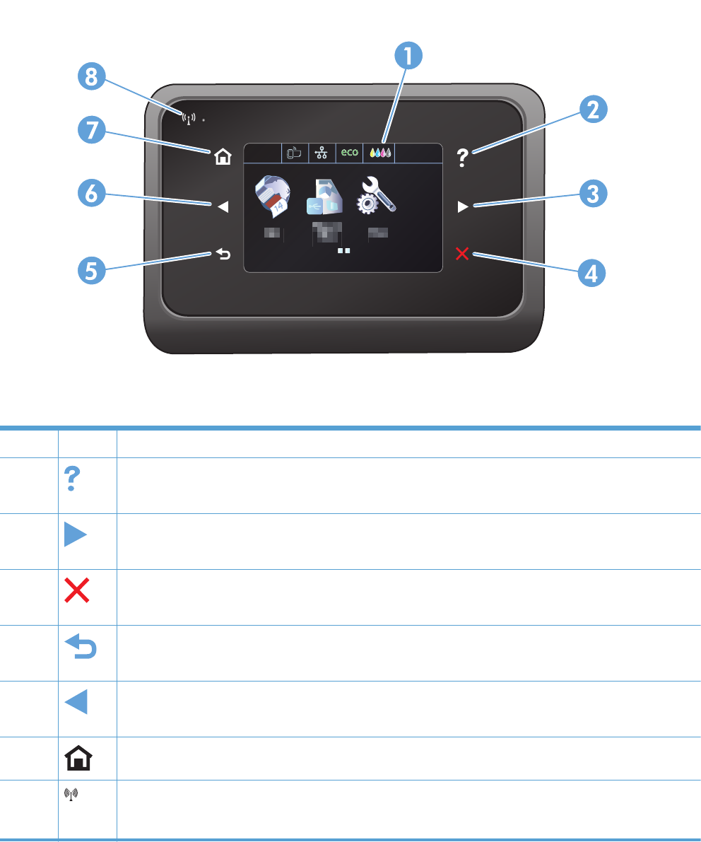 Botón Cancelar: cancela el trabajo en curso o sale de la pantalla activa en ese momento.