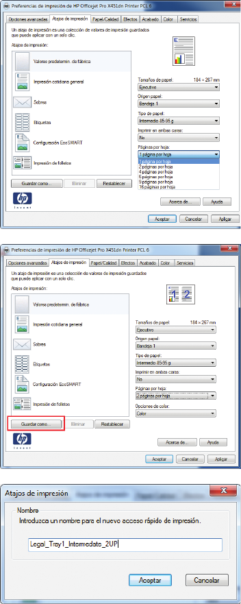 - Almacenamiento de la configuración de impresión personalizada para volver a utilizarla con Windows