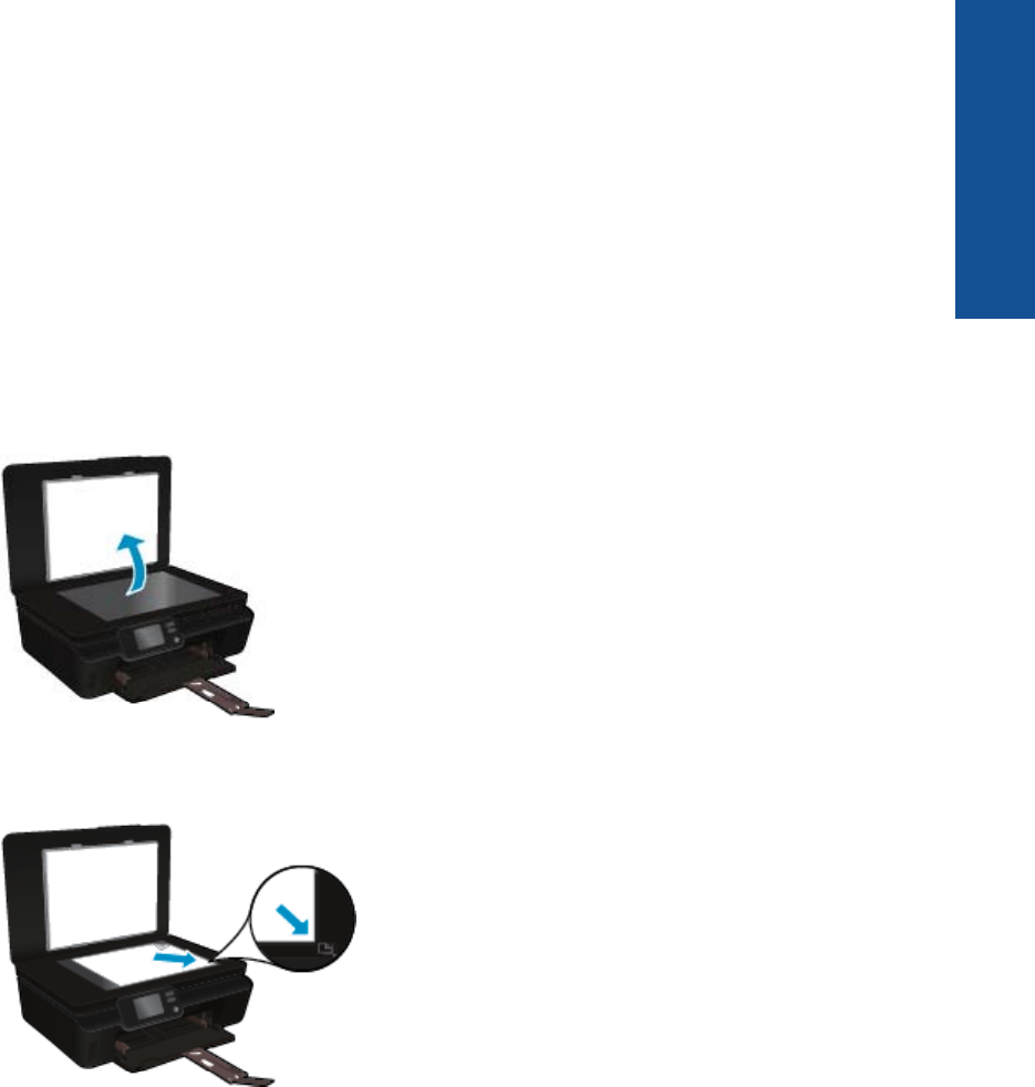 b. Postavite original sa stranicom za ispis okrenutom prema dolje na prednji desni kut stakla.