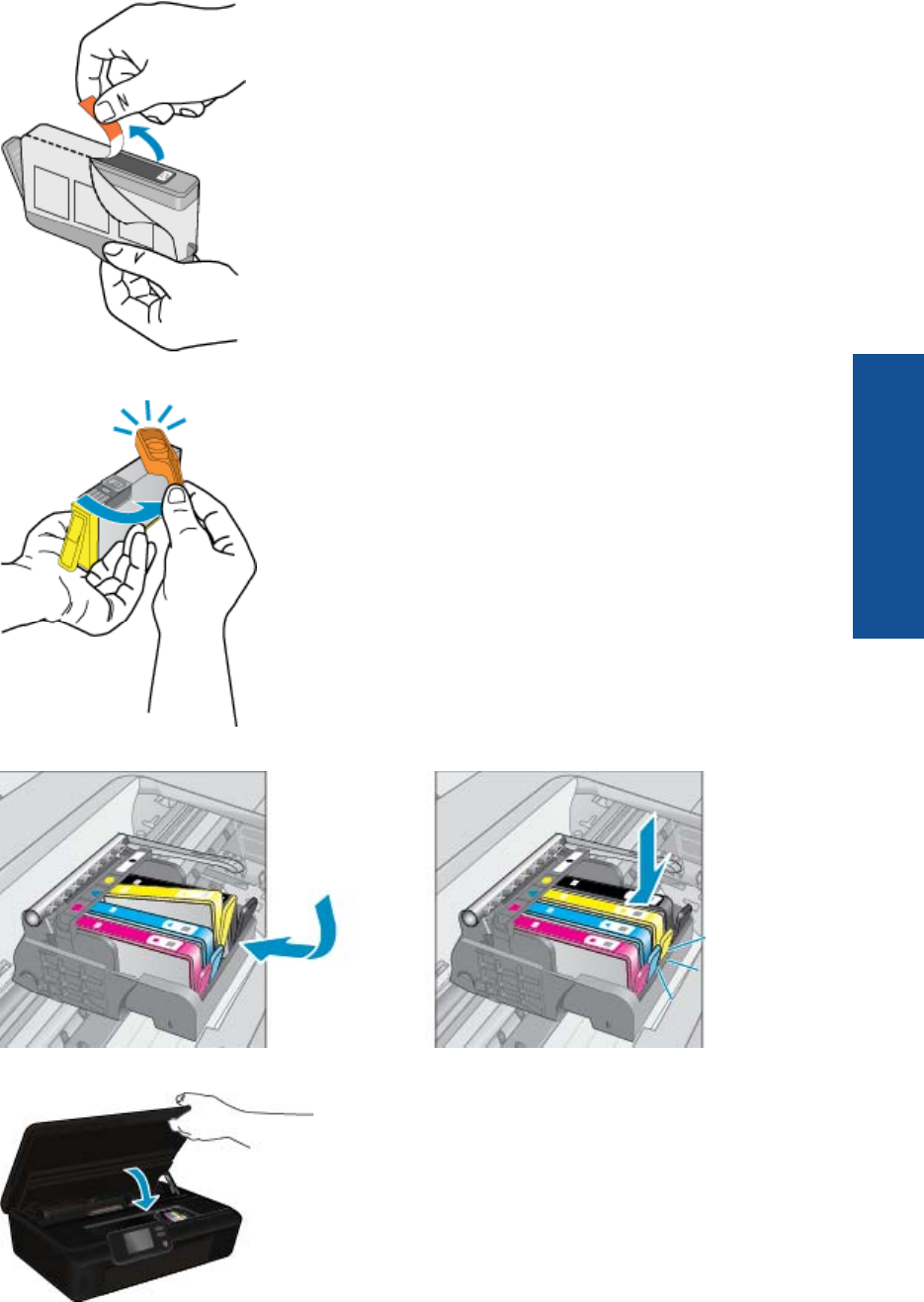 c. Pas de kleurpictogrammen bij elkaar en schuif de cartridge in de sleuf tot deze op zijn plaats klikt.
