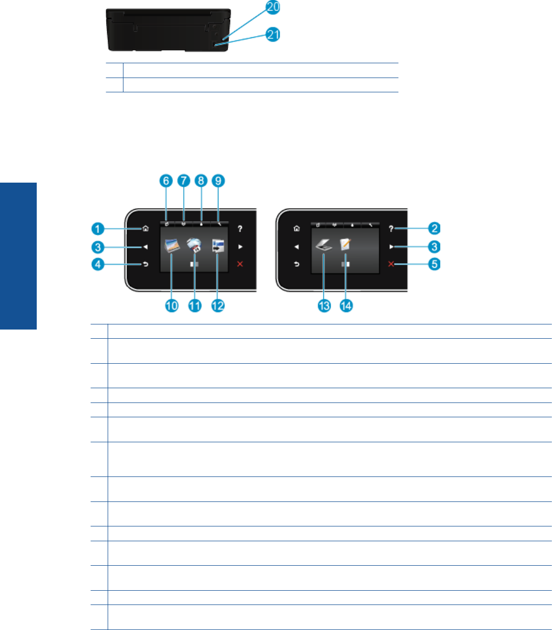 21 Netsnoeraansluiting. Gebruik alleen het netsnoer dat door HP is geleverd.