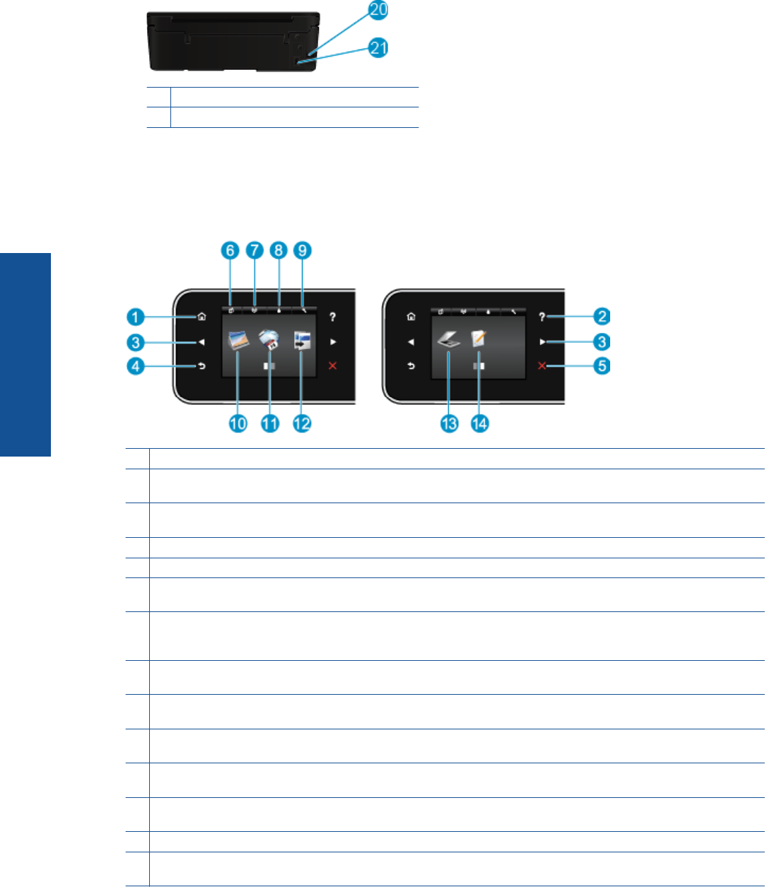 21 Tápcsatlakozó. Csak a HP tápkábelt használja.