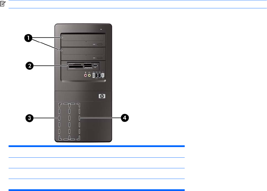 2 One 3.5-inch external drive bay for optional drive (media card reader shown)