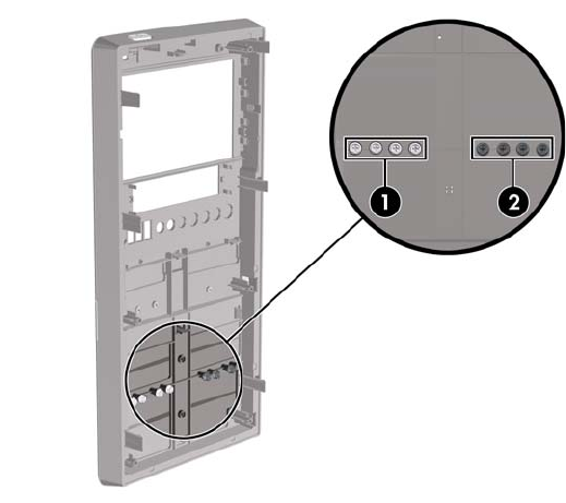 If needed, HP has provided extra drive retainer screws on the interior of the front bezel that are