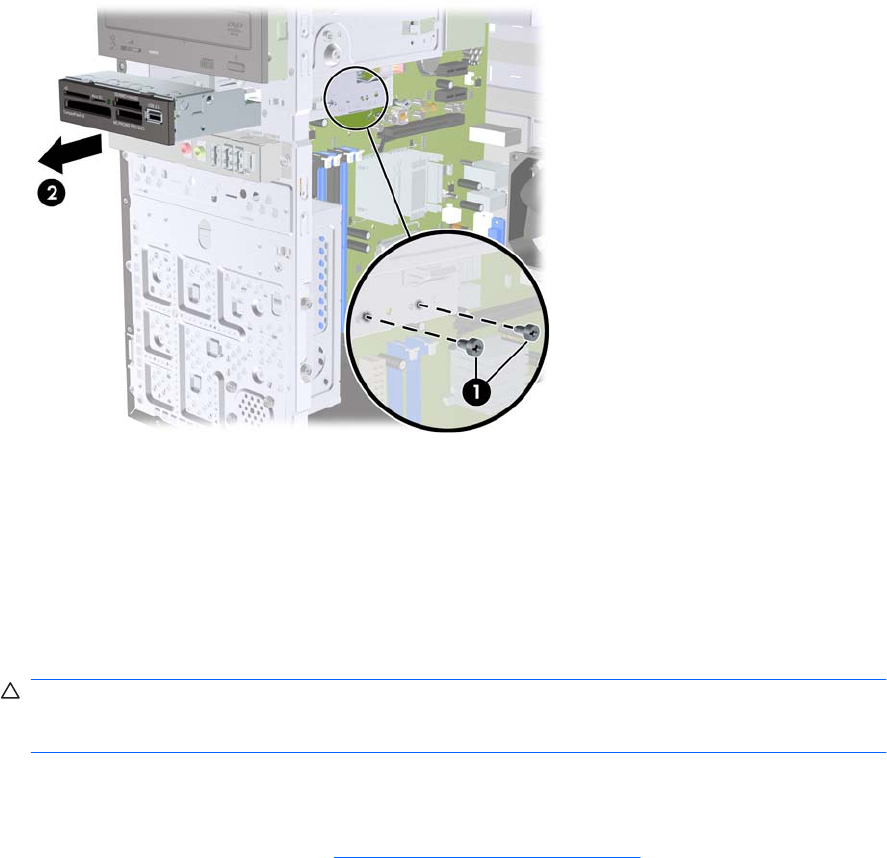 6. If you are installing a media card reader in a bay covered by a bezel blank, remove the front bezel