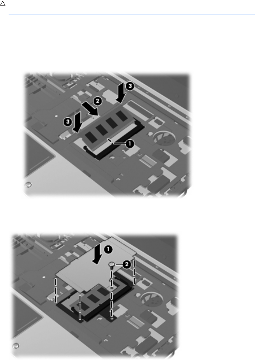 c. Gently press the memory module (3) down, applying pressure to both the left and right edges