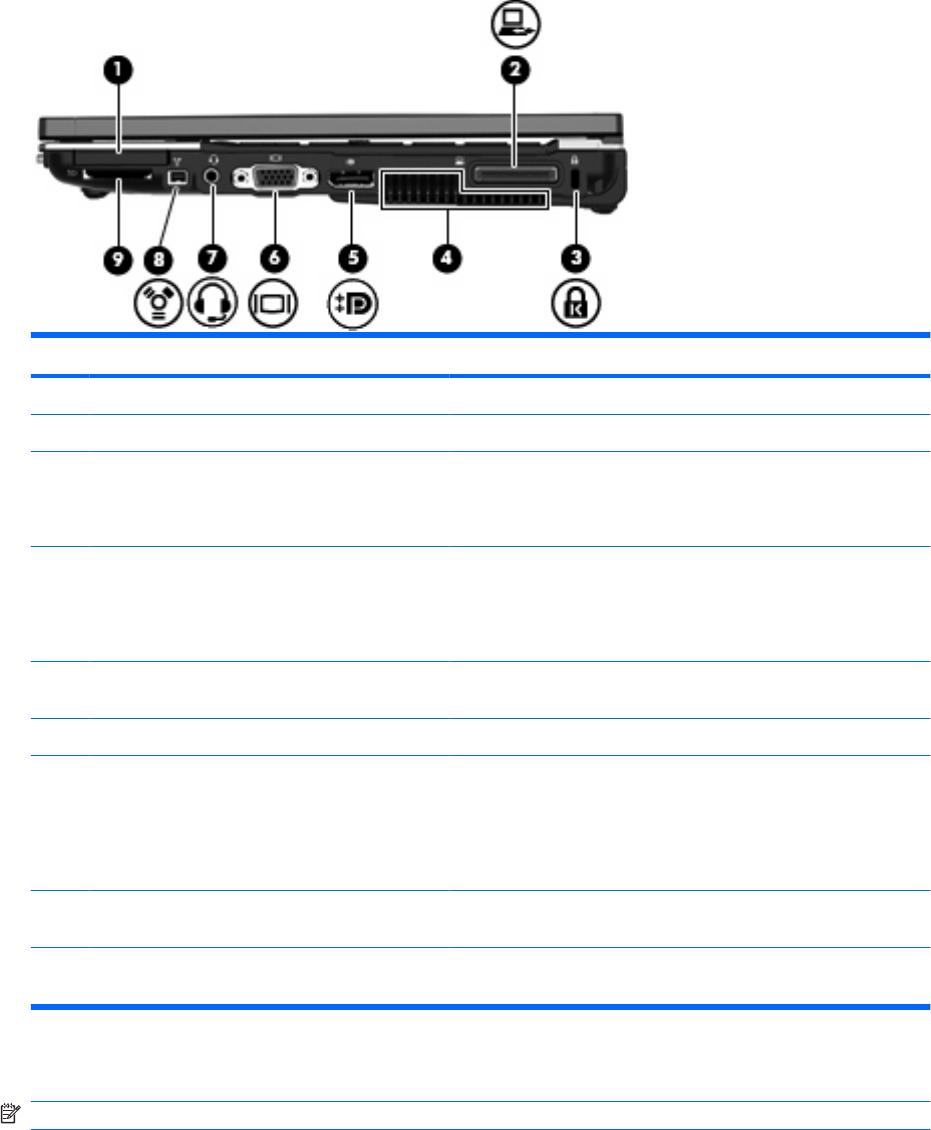 (5) DisplayPort Connects a digital display device, such as a high-performance