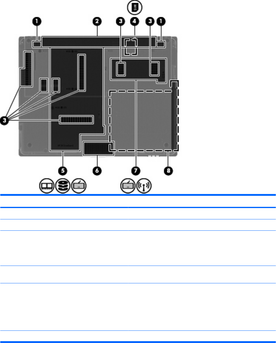 (4) SIM slot (select models only) Contains a wireless subscriber identity module (SIM). The SIM slot