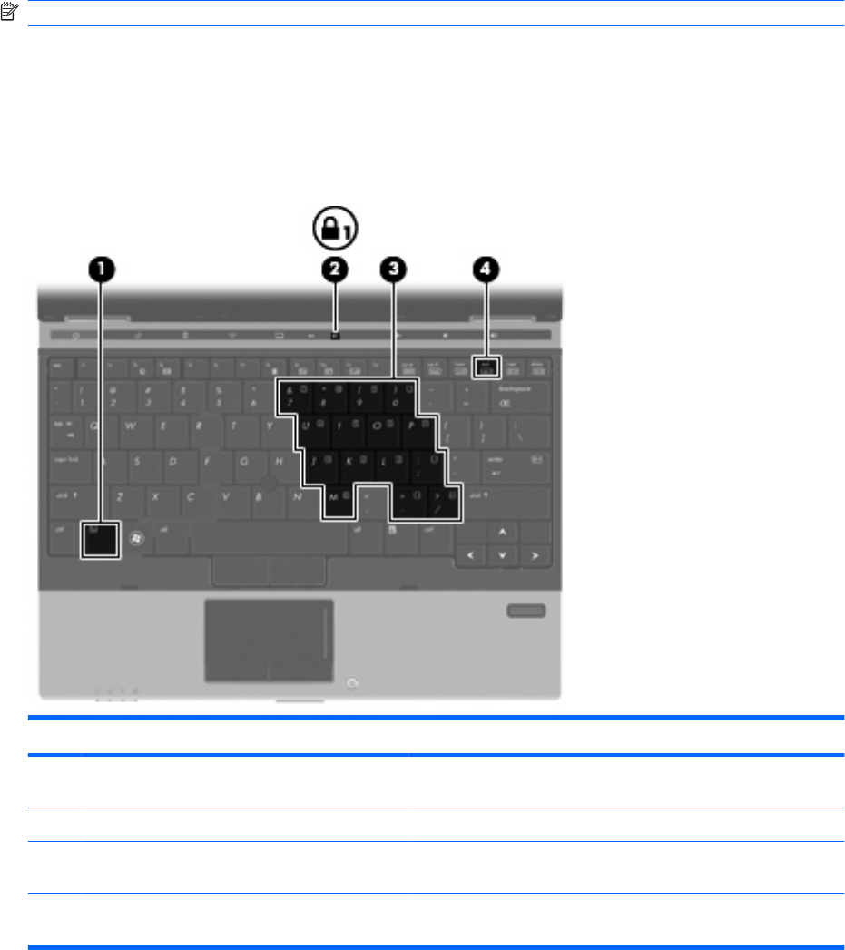 (1) fn key Enables/disables the embedded numeric keypad when pressed in