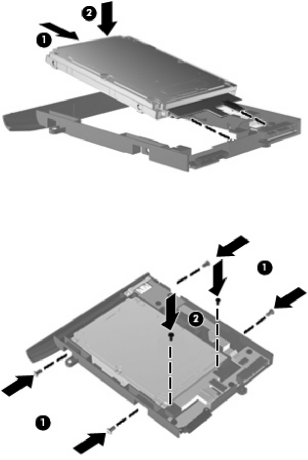 b. Replace the 2 screws on each side of the hard drive carrier (1).