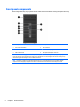 Front panel components Drive configuration may vary by model. Some models have a bezel blank covering the optical drive bay. 1 Slim Optical Drive (optional) 5 Headphone Connector 2 Dual-State Power Button 6 SD Card Reader 3 USB 2.0 Ports (black) 7 Hard Drive Activity Light 4 USB 3.