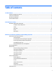 Table of contents 1 Product features ........................................................................................................................................... 1 Standard configuration features ........................................................................................................................... 1 Front panel components .......................................................................................................................................