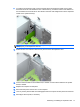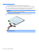 10. Connect the power cable (1) and data cable (2) to the back of the optical drive.