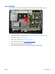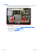 7. Remove two Torx screws (1) that secure the right speaker to the computer, and then disconnect the