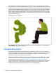 WRONG Do not rest your palms on the work surface or bend your wrists markedly down. WRONG Do not bend your wrists markedly inward. Follow these work surface guidelines: ● Place the keyboard directly in front of you to avoid twisting your neck and torso. ● Adjust the height of the work surface for the comfort of your shoulders, arms, wrists, and hands. Your shoulders should be relaxed and your elbows should hang comfortably at your sides.