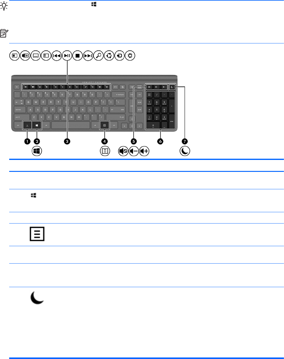 NOTE: Depending on the country or region, your keyboard may have different keys and keyboard