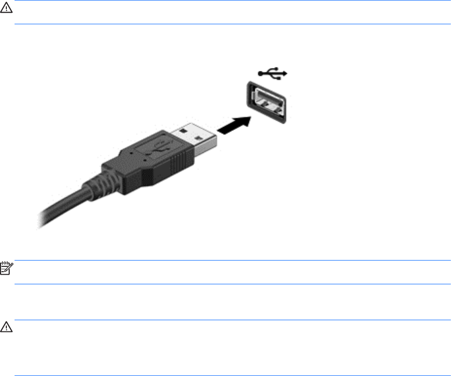 CAUTION: To reduce the risk of damage to a USB connector, use minimal force to connect the