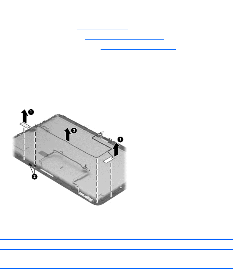 2. Release the wireless antenna cables from the clips (2) built into the display assembly.