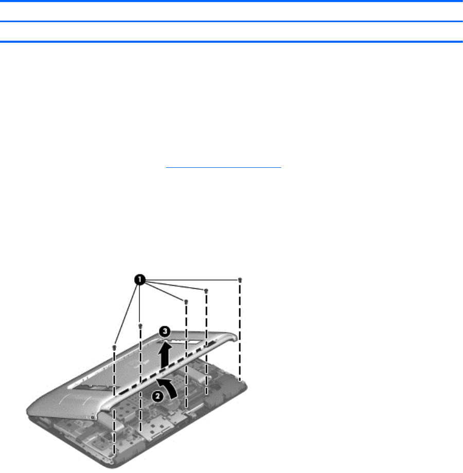 1. Remove the five Phillips PM3.0×6.5 screws (1) that secure the rear cover to the computer.