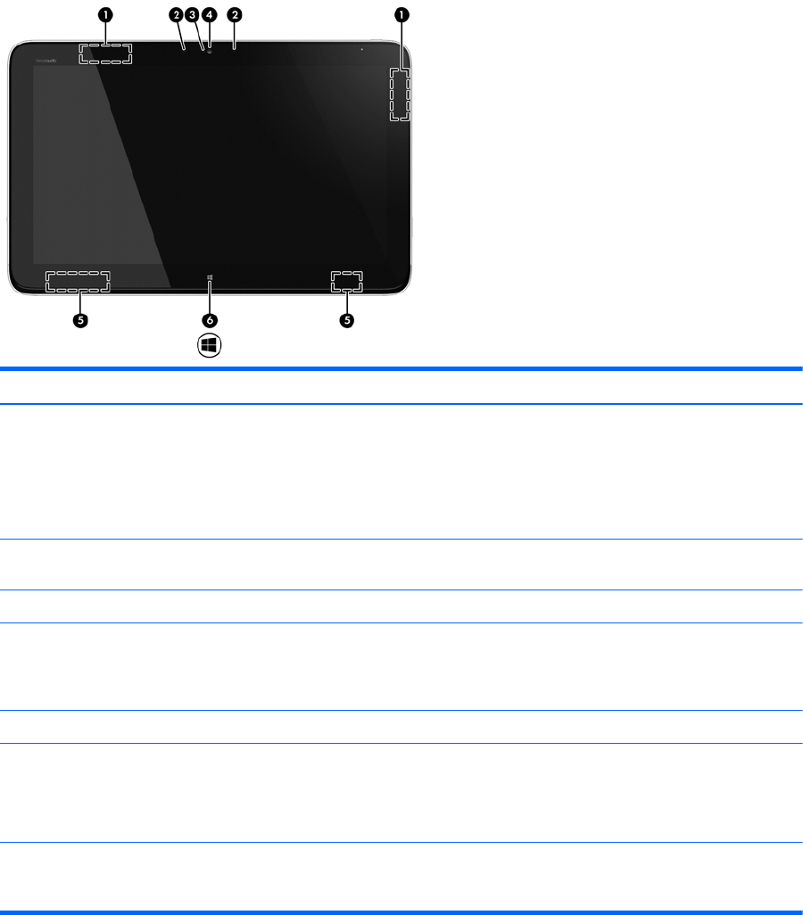 (1) WLAN antennas (2)* Send and receive wireless signals.