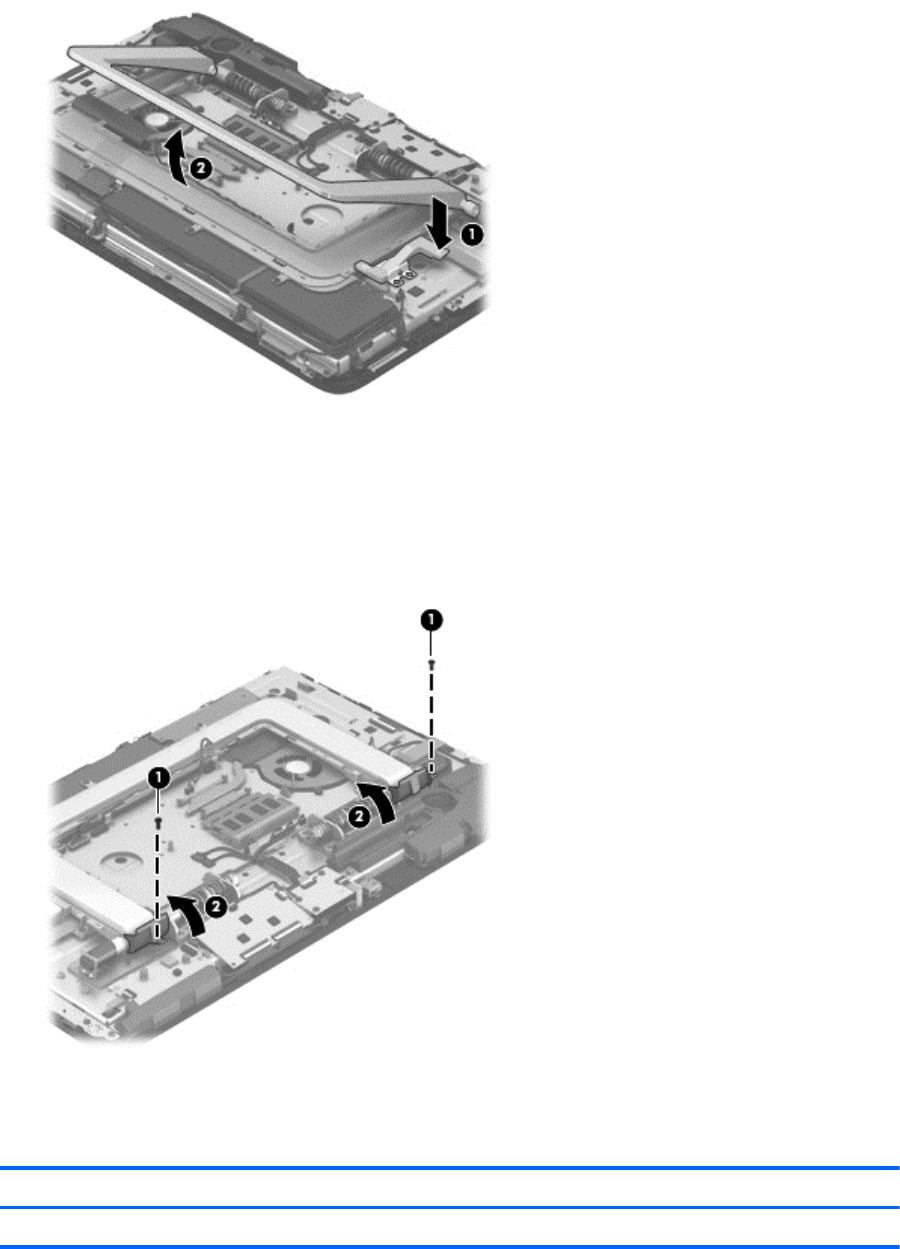 5. Release the display panel cable from the clips (2) built into the display stand recess.