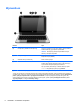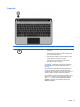 (1) Obszar płytki dotykowej TouchPad Umożliwia przesuwanie wskaźnika po ekranie, a także
