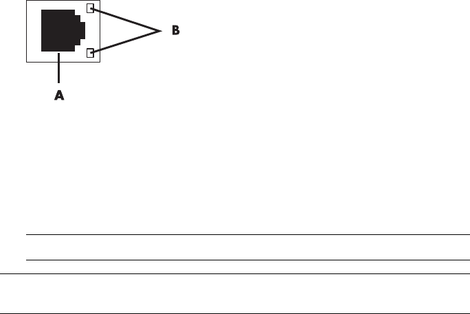 2 With the computer turned on, check the indicator lights (B) next to the Ethernet connector