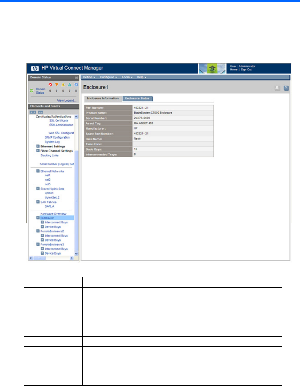 Rack Name Name of the enclosure rack (assigned through the Onboard Administrator)