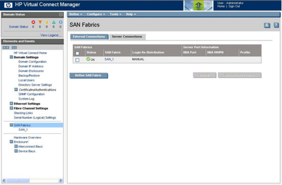 To redistribute logins on a SAN fabric, click Redistribute Logins.