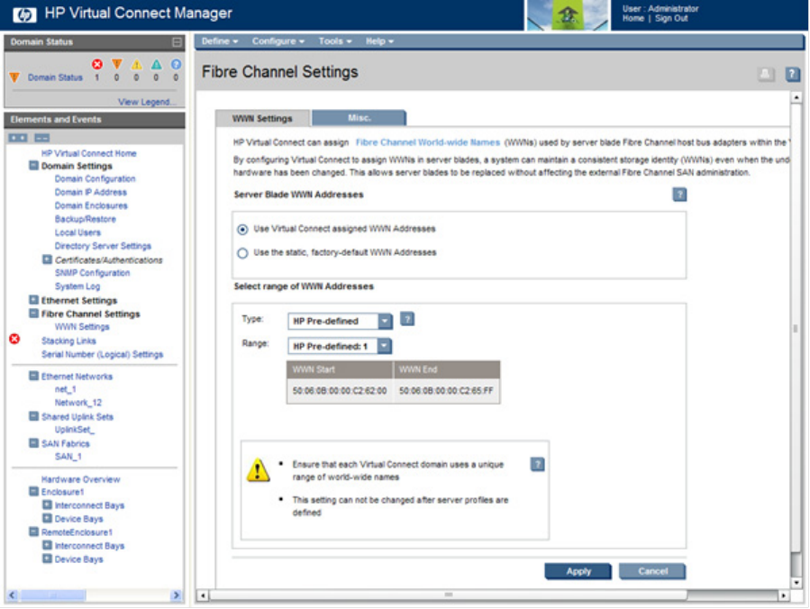 Select Fibre Channel Settings from the Configure pull-down menu.